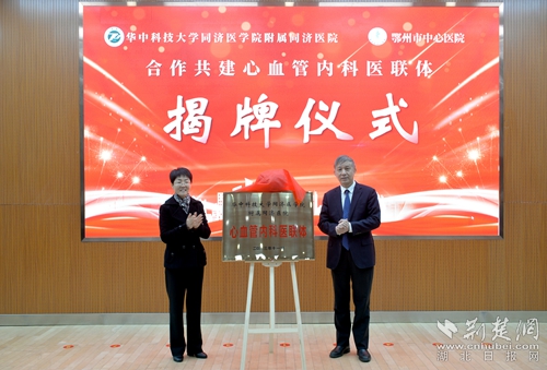 荊楚網(wǎng)(湖北日?qǐng)?bào)網(wǎng))訊(通訊員 高曉東 潘?。?1月16日,鄂州市中心醫(yī)院心內(nèi)科與華中科技大學(xué)同濟(jì)醫(yī)學(xué)院附屬同濟(jì)醫(yī)院心內(nèi)科合作共建“心血管內(nèi)科醫(yī)聯(lián)體”簽約揭牌儀式在市中心醫(yī)院學(xué)術(shù)報(bào)告廳舉行。