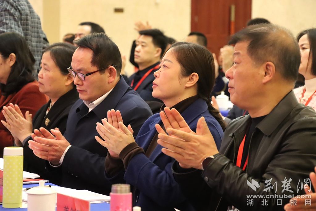 鄂州市人大常委會黨組成員、副主任、市總工會主席候選人葉祥明作大會工作報告。阮瓊 攝