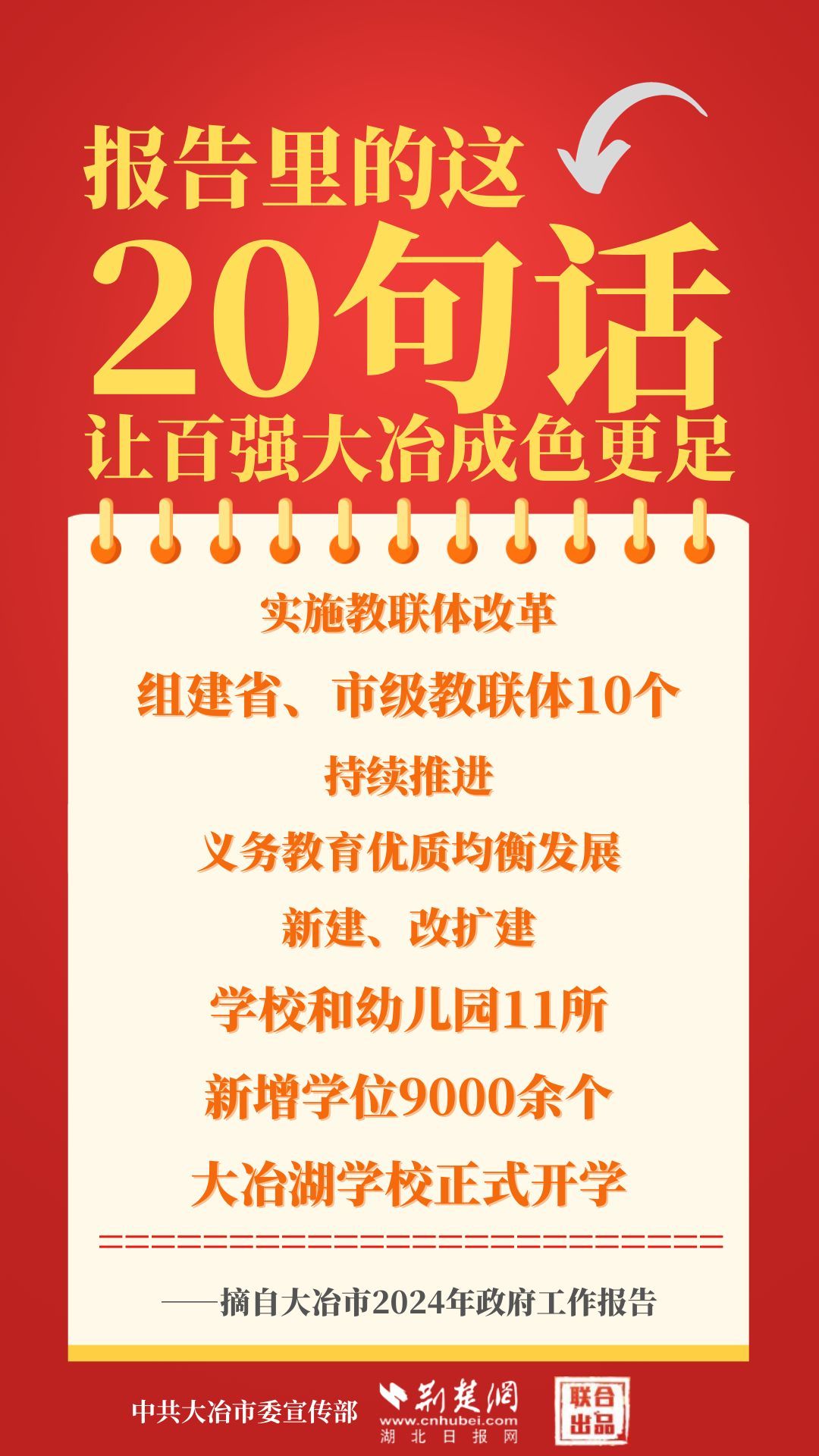 1月12日,大冶市第七屆人民代表大會(huì)第四次會(huì)議開(kāi)幕,大冶市委副書記、市長(zhǎng)孫輒作政府工作報(bào)告。報(bào)告里的這20句話,讓百?gòu)?qiáng)大冶成色更足。
