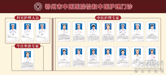 2022年5月12日,鄂州市中醫(yī)醫(yī)院開(kāi)設(shè)怡和中醫(yī)護(hù)理門(mén)診,是全市首家集護(hù)理、科研、教學(xué)于一體具有中醫(yī)特色的護(hù)理門(mén)診,開(kāi)展灸法、罐法、刮痧、穴位貼敷、放血、中藥熏藥、穴位注射等50余項(xiàng)中醫(yī)特色護(hù)理療法,為廣大人民群眾提供專業(yè)的“簡(jiǎn)便驗(yàn)廉”中醫(yī)特色護(hù)理療法,以及中醫(yī)膳食、生活起居、情志調(diào)攝、中醫(yī)養(yǎng)生指導(dǎo)。