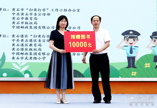 中國(guó)郵政集團(tuán)有限公司黃石城區(qū)分公司副總經(jīng)理柯海平表示,將積極參與“掃黃打非”工作,落實(shí)郵政快遞業(yè)“收寄驗(yàn)視、實(shí)名登記、過(guò)機(jī)安檢”三項(xiàng)制度,加大“畫像法”的宣貫力度,嚴(yán)防非法出版物流入寄遞渠道;積極宣傳“掃黃打非”有關(guān)政策法規(guī),引導(dǎo)告知廣大群眾不得寄遞非法有害出版物,共同助力未成年人健康成長(zhǎng),并向黃石市武黃路小學(xué)捐贈(zèng)1萬(wàn)元圖書。
