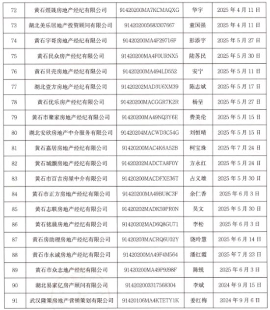 據(jù)悉,今年4月10日,該市共有69家房地產(chǎn)經(jīng)紀(jì)機(jī)構(gòu)成功備案。7月26日,黃石市住房和城市更新局再次印發(fā)文件,公示2024年黃石市城區(qū)91家房地產(chǎn)經(jīng)紀(jì)機(jī)構(gòu)備案情況,進(jìn)一步規(guī)范房地產(chǎn)經(jīng)紀(jì)服務(wù)行為,保障房地產(chǎn)交易雙方當(dāng)事人的合法權(quán)益,維護(hù)房地產(chǎn)市場(chǎng)秩序。