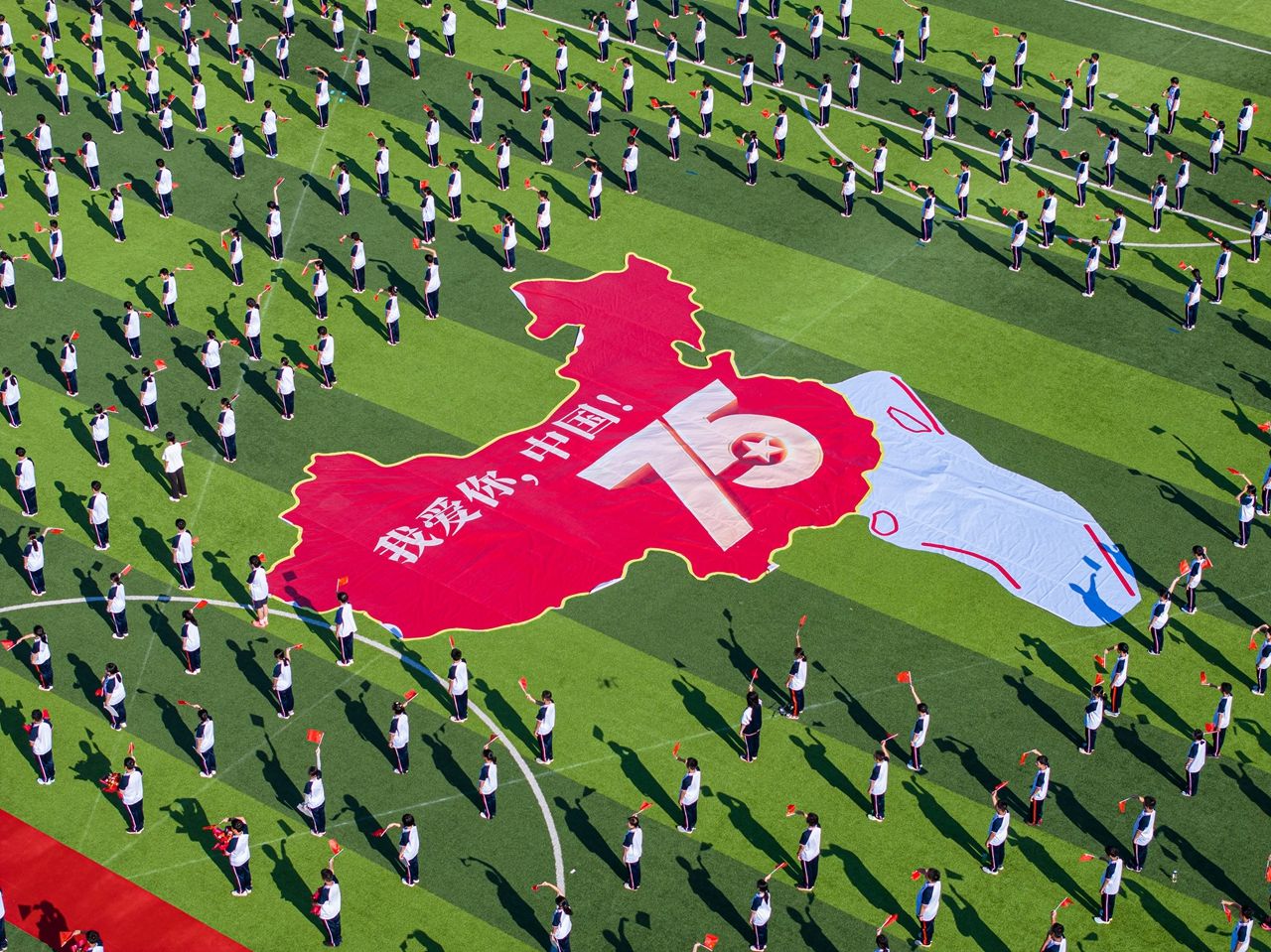 超大規(guī)格的國(guó)旗驚艷亮相。黃石日?qǐng)?bào) 周巍 攝