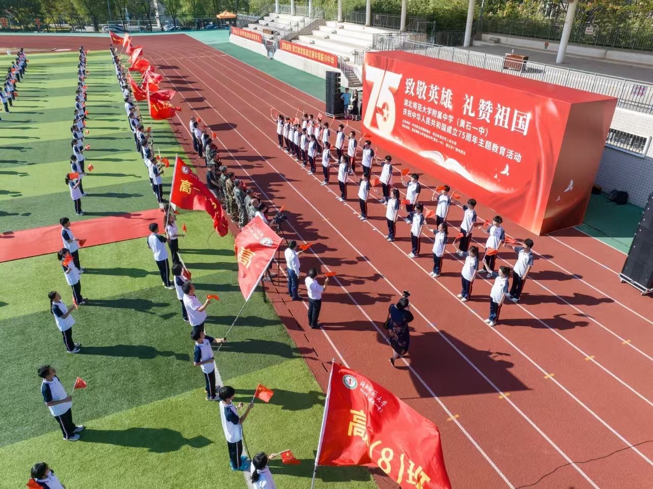 9月29日上午,國(guó)慶節(jié)臨近,“致敬英雄 禮贊祖國(guó)”——湖北師范大學(xué)附屬中學(xué)(黃石一中)慶祝中華人民共和國(guó)成立75周年活動(dòng)舉行?;顒?dòng)通過(guò)走一次紅地毯、唱一首主題歌、獻(xiàn)一束手捧花、送一本報(bào)道集等形式,致敬為共和國(guó)無(wú)私奉獻(xiàn)的英雄們。