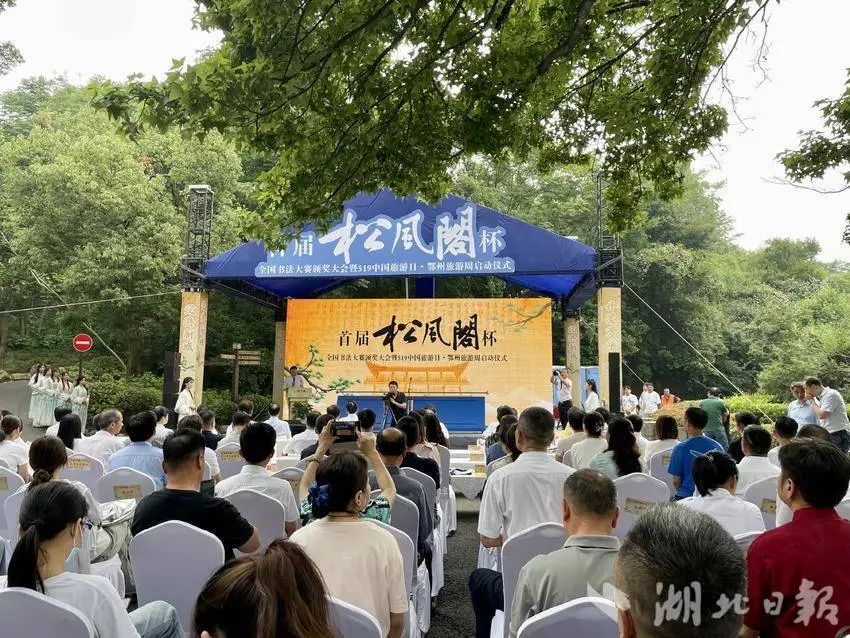 2024年5月19日,中國(guó)旅游日當(dāng)天,首屆“松風(fēng)閣”杯全國(guó)書法大賽頒獎(jiǎng)大會(huì)在鄂州市西山風(fēng)景區(qū)隆重舉辦,省、市領(lǐng)導(dǎo)為獲獎(jiǎng)代表頒獎(jiǎng)。與此同時(shí),現(xiàn)場(chǎng)邀請(qǐng)專家進(jìn)行了“跨越千年,對(duì)話黃庭堅(jiān)——黃庭堅(jiān)松風(fēng)閣書法的價(jià)值及對(duì)鄂州文化的塑造”對(duì)話。