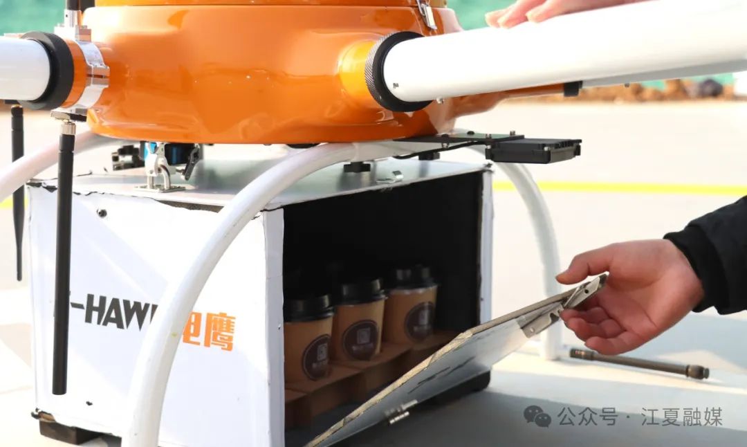 “從無人機起飛、取單到配送,全程耗時僅約5分鐘?!痹诘涂瘴锪髋渌头昭菔经h(huán)節(jié),電鷹科技研發(fā)的EHM-1600物流無人機為現(xiàn)場嘉賓送來8杯咖啡外賣。據(jù)了解,電鷹速遞試運營階段已累計飛行150余架次,完成文件、餐飲、重要物品等不同種類不同形態(tài)物資低空配送并取得詳細運行數(shù)據(jù)。