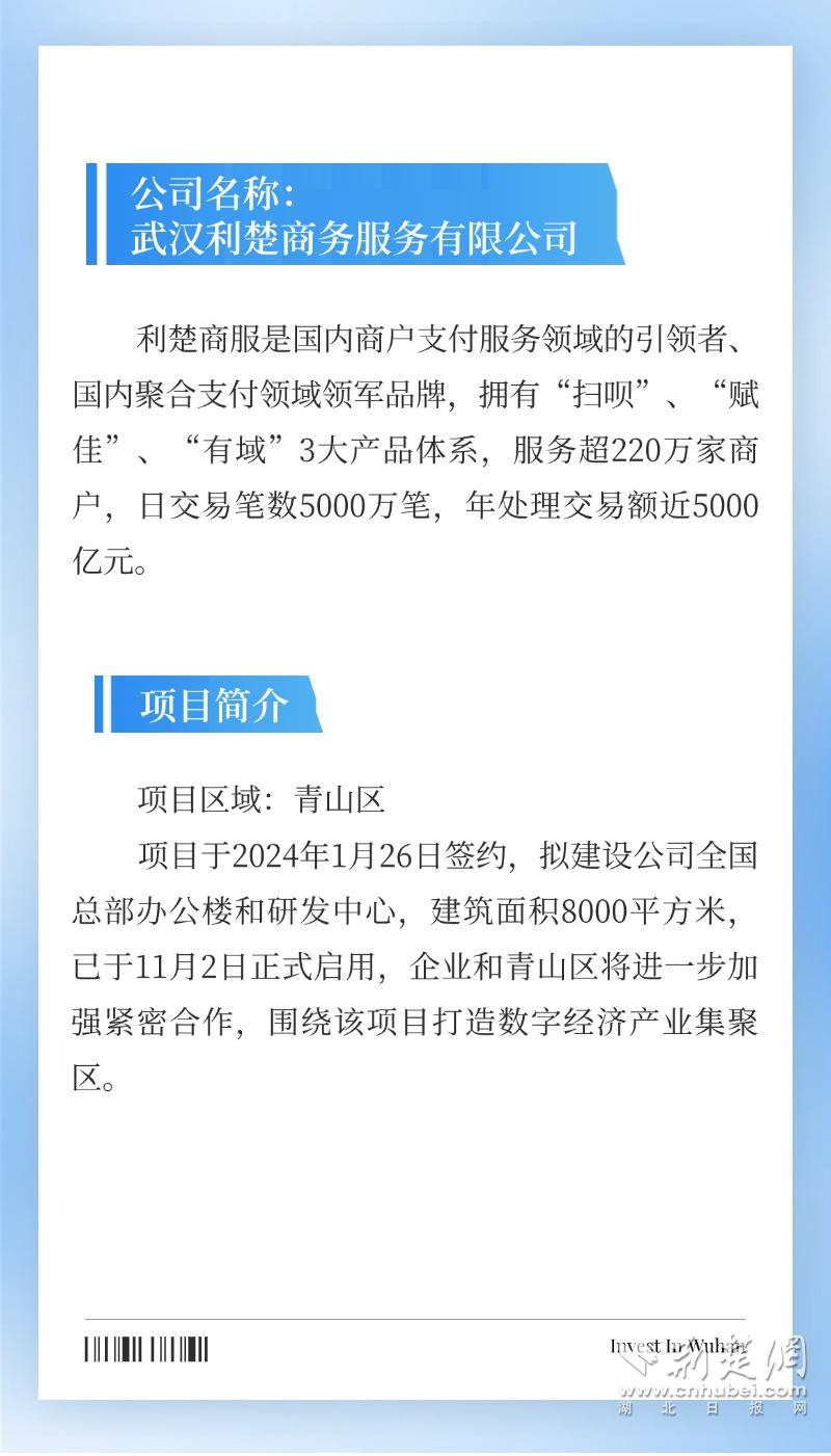 荊楚網(wǎng)(湖北日報網(wǎng))訊(通訊員 謝家奇 陳丹)2024年,武漢招商引資活力迸發(fā),一大批重點(diǎn)項(xiàng)目落地有聲。推動傳統(tǒng)產(chǎn)業(yè)轉(zhuǎn)型升級,培育壯大新興產(chǎn)業(yè)、未來產(chǎn)業(yè)齊頭并進(jìn),不斷擦亮“投資武漢”品牌,以高水平招商引資賦能武漢高質(zhì)量發(fā)展。
