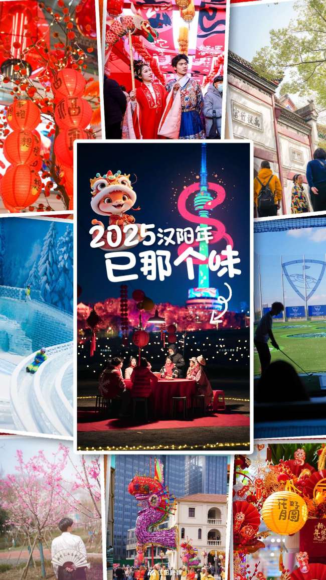 作為“春節(jié)”申遺成功后的首個中國年,漢陽各個活動點位節(jié)日氛圍拉滿,漢服巡游、舞獅糖畫、木偶劇、非遺手工技藝等各式體驗琳瑯滿目,精彩紛呈,感受滿滿中國年味。遠洋里(鸚鵡大道和翠微路交匯處)主會場將打造“蛇么都好”——2025新春歸元廟會,新春市集涵蓋年貨特賣、非遺文化體驗、特色美食品鑒等,還有巨型“抱抱球”、蛇年好運相框等打卡點等你拍照。龜山風景區(qū)攜手玄武文化,開啟“玄武慶歲華——龜山新春祈福之旅”主題活動。體驗一場尋找仙人遺跡、解開古老謎團的冒險之旅,快樂迎新春。