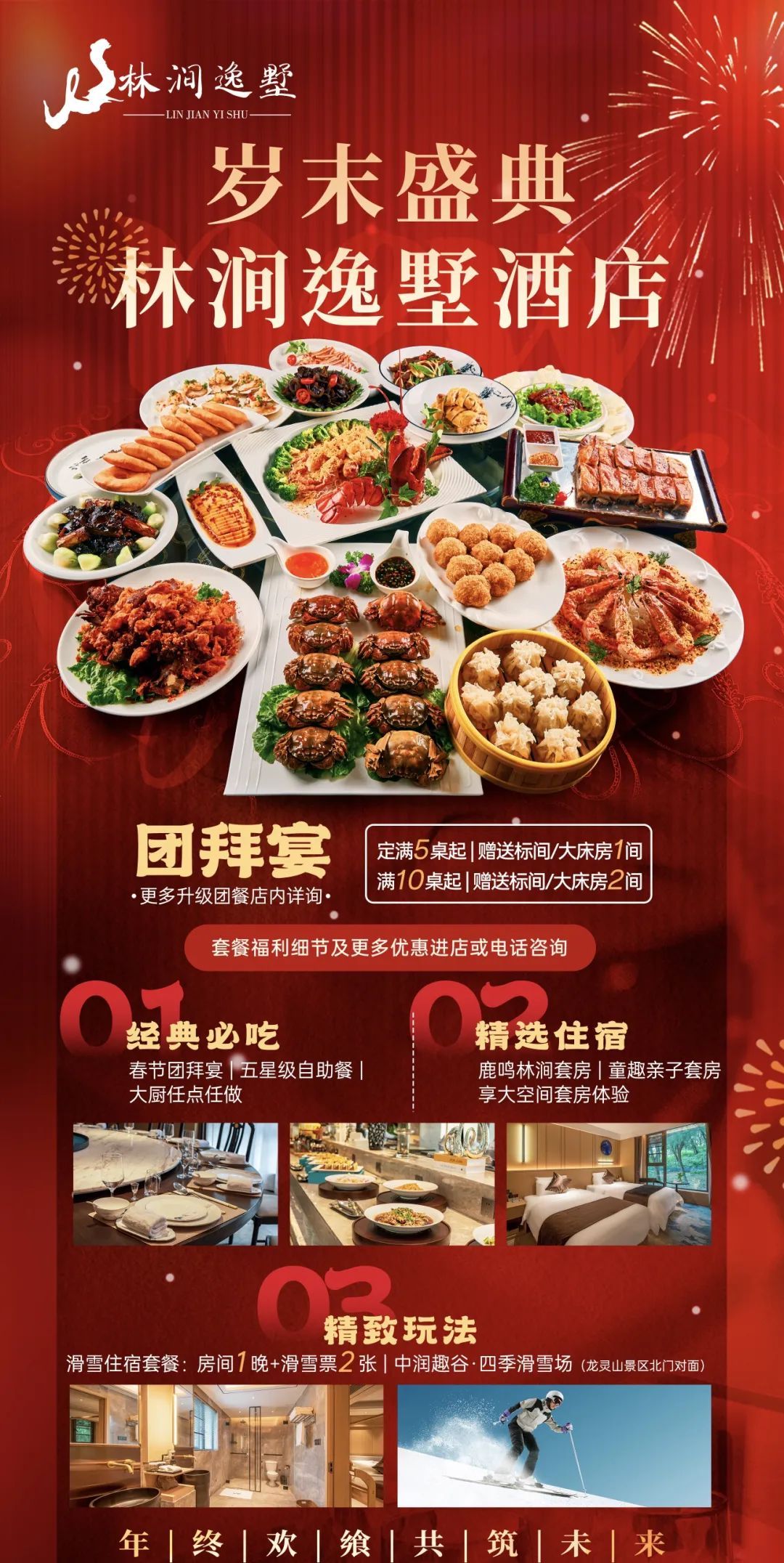 春節(jié)期間正常開放,即日起至2月12日(正月十五)推出團(tuán)年宴優(yōu)惠折扣套餐。
