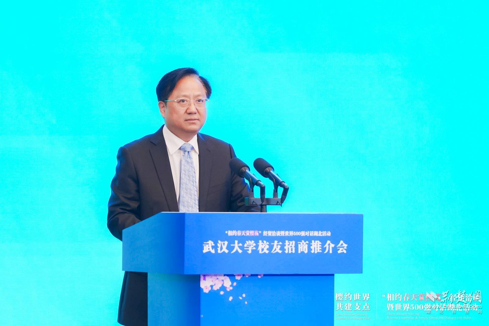 會場外,武漢的早櫻正迎來盛花期;會場內(nèi),省商務廳一級巡視員陳華榮正以數(shù)據(jù)解碼湖北機遇:多年來,武大校友企業(yè)家在湖北這片創(chuàng)業(yè)創(chuàng)新的熱土上深耕細作,近五年在鄂簽約投資超過6000億,成為驅(qū)動湖北經(jīng)濟高質(zhì)量發(fā)展的重要引擎。當前省委省政府高度重視楚商回鄉(xiāng),湖北省將為廣大的校友、企業(yè)家返回湖北投資興業(yè)提供全方位、全流程的保障服務和政策要素支持,為湖北加快建成中部地區(qū)崛起重要戰(zhàn)略支點注入強勁的動力。