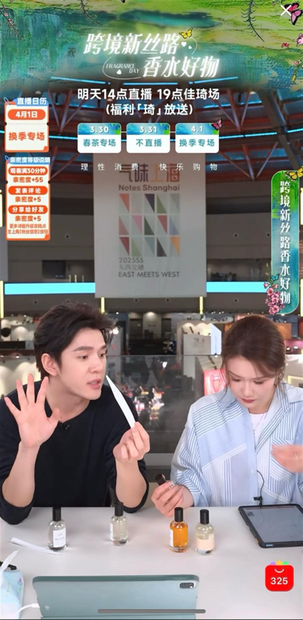 近日,李佳琦直播間開展“跨境新絲路 香水專場”,作為“絲路好物”系列專場活動的一部分,本次直播實(shí)現(xiàn)又一次品類拓展,繼美食、護(hù)膚品之后,成功將香水品類引入絲路跨境電商,標(biāo)志著美腕在“一帶一路”倡議框架下的電商創(chuàng)新實(shí)踐邁出關(guān)鍵一步。