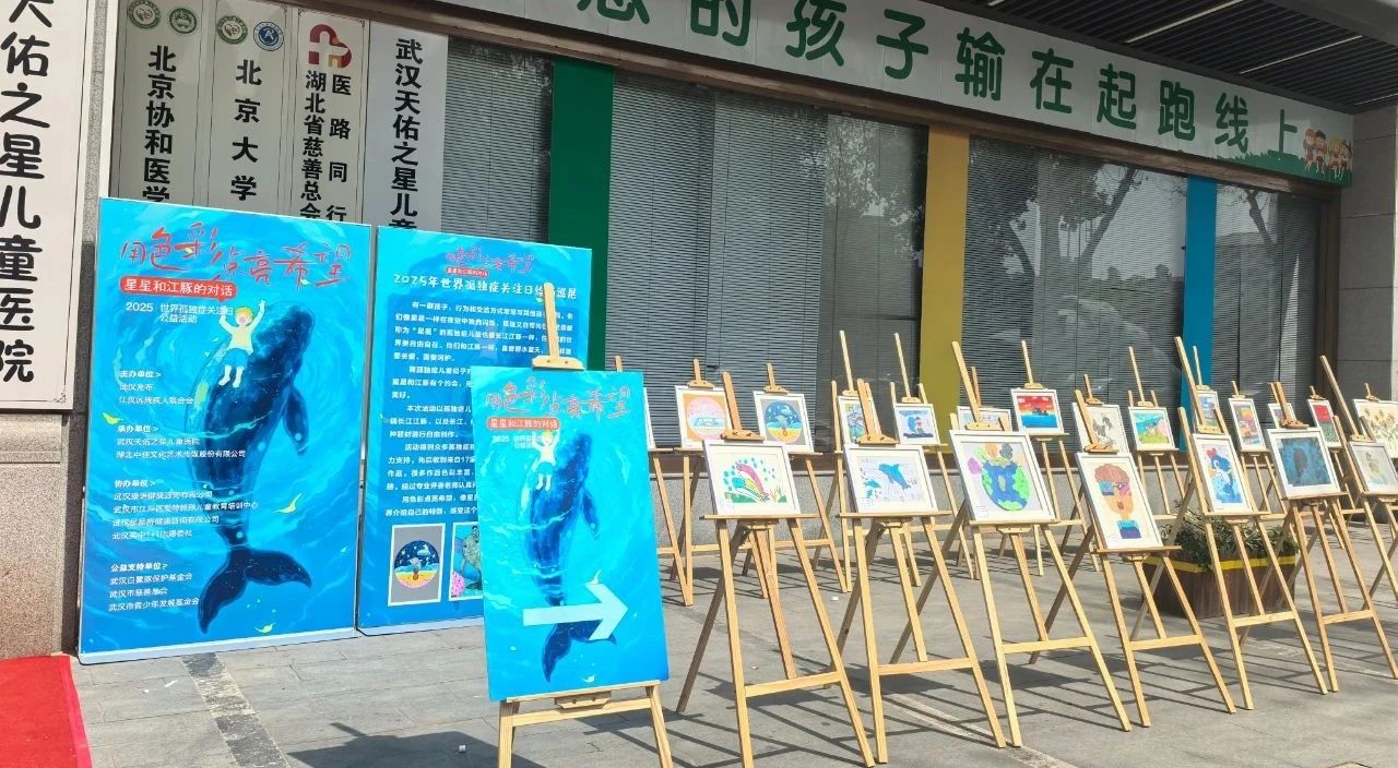 2025年4月2日,在第18個世界孤獨癥關(guān)注日當(dāng)天,“星星與江豚的對話”繪畫巡展于武漢西北湖公園畔溫暖開展,30幅由孤獨癥兒童創(chuàng)作的畫作吸引數(shù)百名市民駐足。