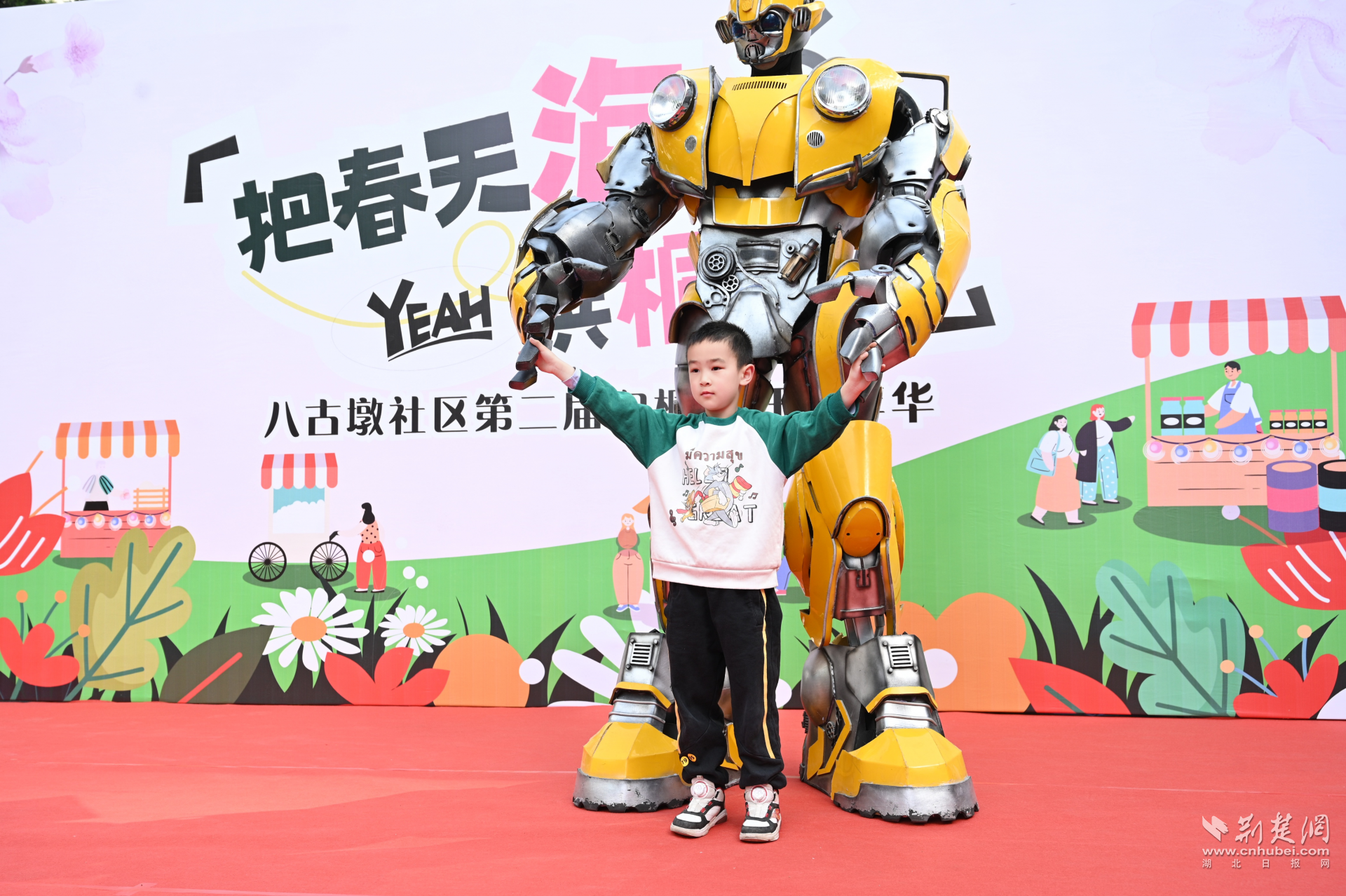 全民共建聚合力?;顒踊I備階段,社區(qū)黨委充分發(fā)揮居民議事會作用,發(fā)動30余名居民志愿者成立策展專班。轄區(qū)居民羅先生主動請纓,免費贊助大黃蜂機(jī)器人、小丑巡游等氛圍裝置,并與社區(qū)文藝團(tuán)隊自編自演的5支主題舞蹈形成創(chuàng)意碰撞。當(dāng)三米高的炫酷機(jī)器人牽手小丑姑娘巡游時,現(xiàn)場瞬間化作歡樂海洋,居民們爭相與巡游隊伍合影,自發(fā)在朋友圈發(fā)起“泡桐花下的奇遇”話題互動,活動未半已收獲上百人次線上傳播。