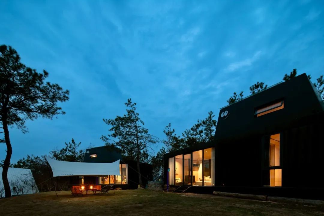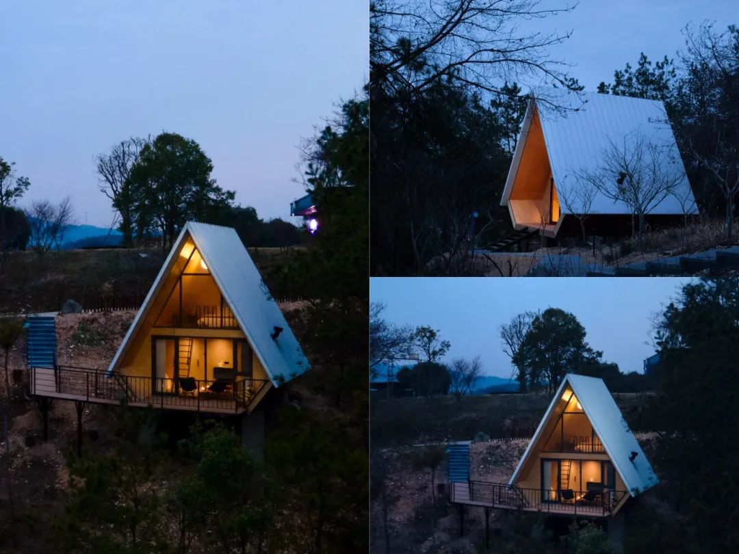 山三與蛙四枕著砂石路面而眠,木紋墻面映照著光的指紋?;ㄎ搴婉妨俗屙?,落地玻璃將山松晨霧拓印裝裱。