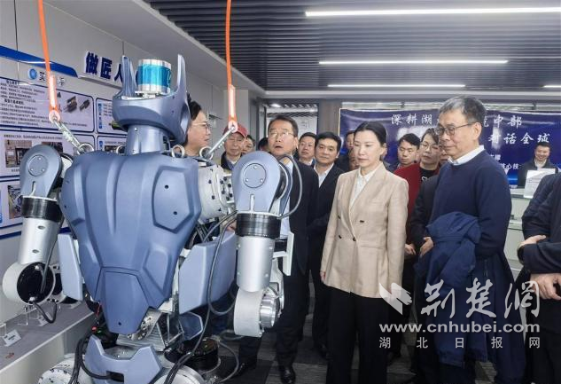 這是湖北省首個機器人領域技術創(chuàng)新中心,該中心由湖北科峰智能傳動股份有限公司牽頭,聯(lián)合華中科技大學、武漢大學等20余所高校院所及產(chǎn)業(yè)鏈頭部企業(yè)共建,聘請中國工程院院士陳學東擔任戰(zhàn)略咨詢委員會主任、中國科學院院士劉勝擔任學術委員會主任。這標志湖北在機器人核心技術創(chuàng)新與產(chǎn)業(yè)轉化上邁出關鍵一步。今年亮相“新春第一會”的“天問”1號人形機器人,由武漢大學劉勝院士團隊研發(fā)。全身關節(jié)有30個自由度,靈巧手有7個自由度。它的傳感器、靈巧手、仿生關節(jié)和芯片等核心部件,80%實現(xiàn)了“鄂研鄂產(chǎn)”。