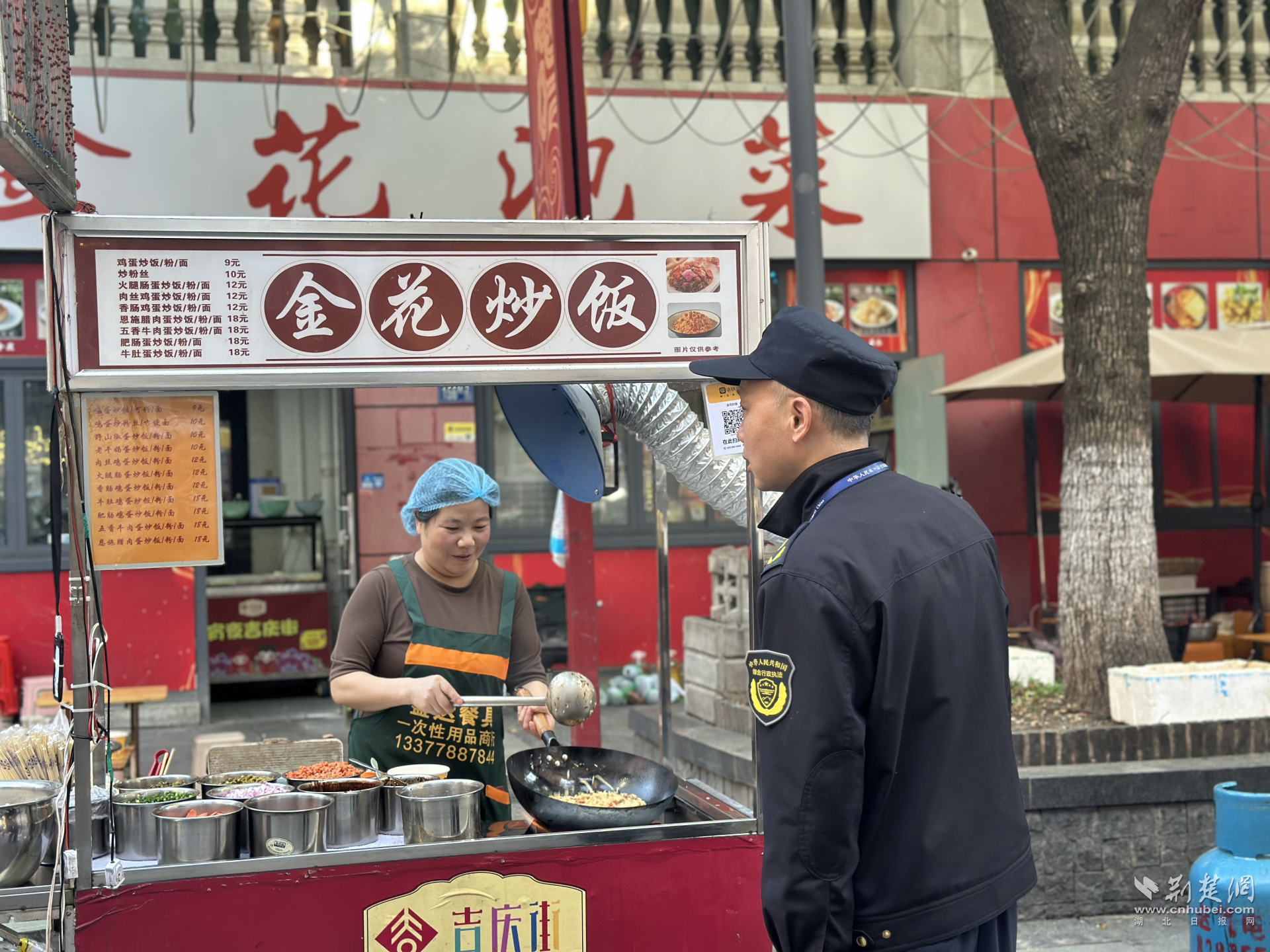 黃師傅口中的劉隊長,是大智街道綜合執(zhí)法中心的隊員劉海濤。自大智街道設(shè)立吉慶街外擺規(guī)范管理區(qū)域以來,這條匯聚了火鍋、燒烤、鹵味的特色美食街區(qū),就成了劉海濤日常巡查管理的“一畝三分地”。
