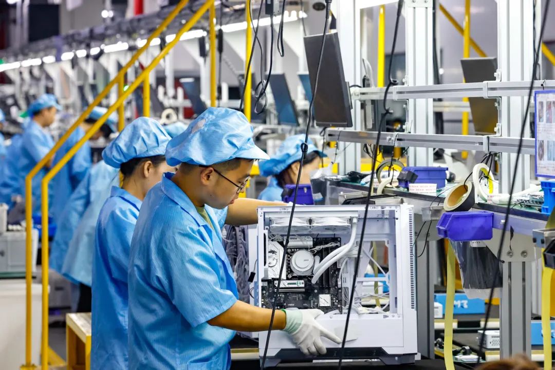 “星閃是新一代近距離無線連接技術,傳輸速度和抗干擾性遠超藍牙和Wi-Fi。”攀升科技主要負責人介紹,攀升科技實現(xiàn)柔性化生產(chǎn),讓生產(chǎn)線上每臺電腦都不一樣,顧客在網(wǎng)上下單,基本實現(xiàn)24小時內(nèi)發(fā)貨,完全滿足用戶大規(guī)模個性化定制。