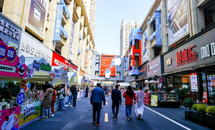 “鮮花小鎮(zhèn)、咖啡街、漁人碼頭海鮮城等,共同構成了漢口北現(xiàn)代時尚生活符號,吸引眾多年輕人前來消費打卡?!庇卫ふf。