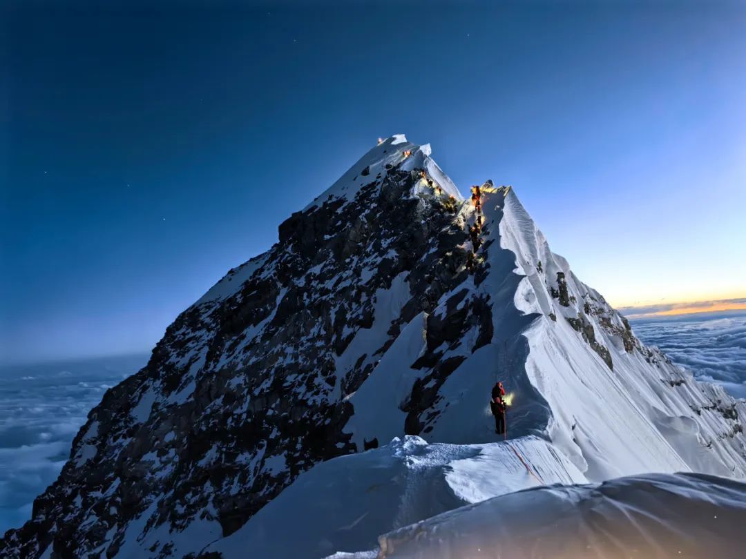帳篷外,零下40度的極寒讓所有裝備都覆上了一層白霜。他反復檢查著登山裝備:氧氣瓶壓力是否正常、頭燈光源是否充足、冰爪固定是否牢靠。這些熟悉的動作,他已經練習了上千遍。