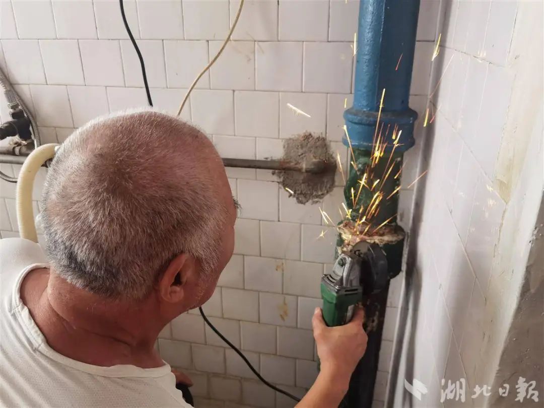 △周重書為居民維修水管。圖源湖北日報。