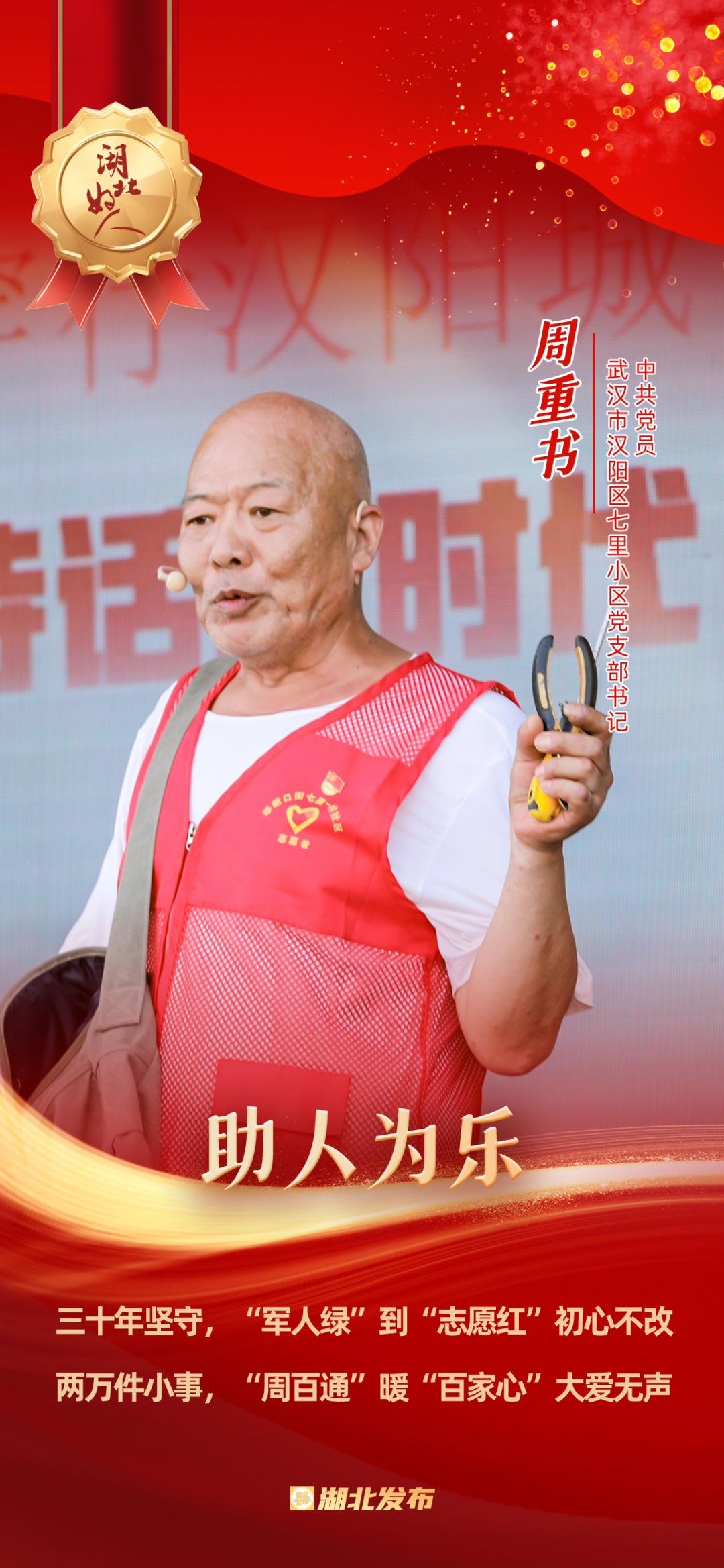 1973年在部隊入黨,1976年轉(zhuǎn)業(yè)到武漢家具廠,2009年被選為社區(qū)黨委委員,2023年榮獲“武漢楷?!狈Q號……今年75歲的周重書是一名退伍老黨員,在部隊曾兩次榮立三等功,在工廠也多次被評為先進(jìn)工作者和模范標(biāo)兵。