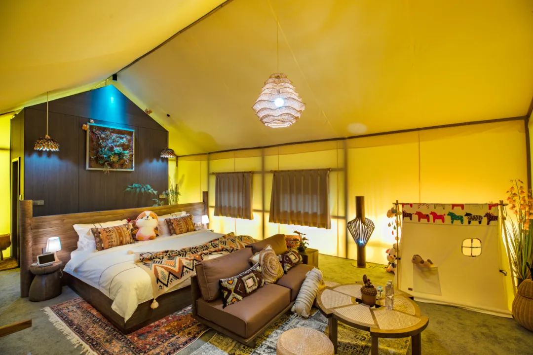 ? 三家民宿組CP選你所愛:除了專注親子出游需求的樂貝·甘露山,隔壁新中式「千里走單騎」和叢林秘境「個(gè)個(gè)世界」也各具特色,一鍵切換度假畫風(fēng)!