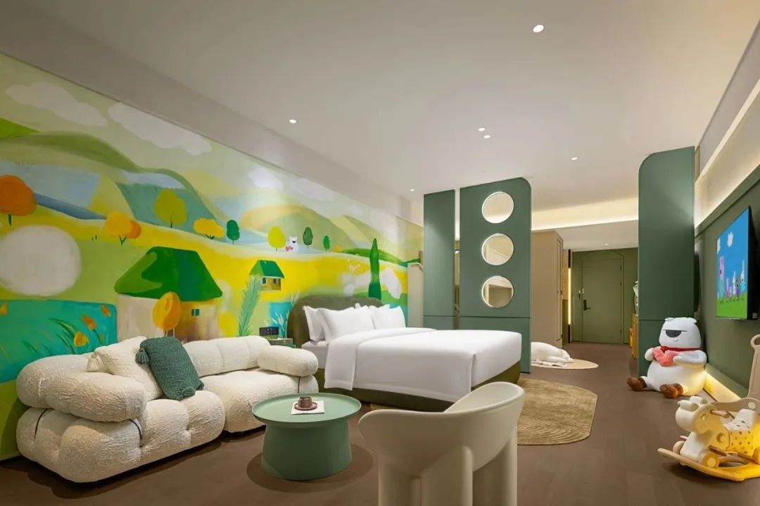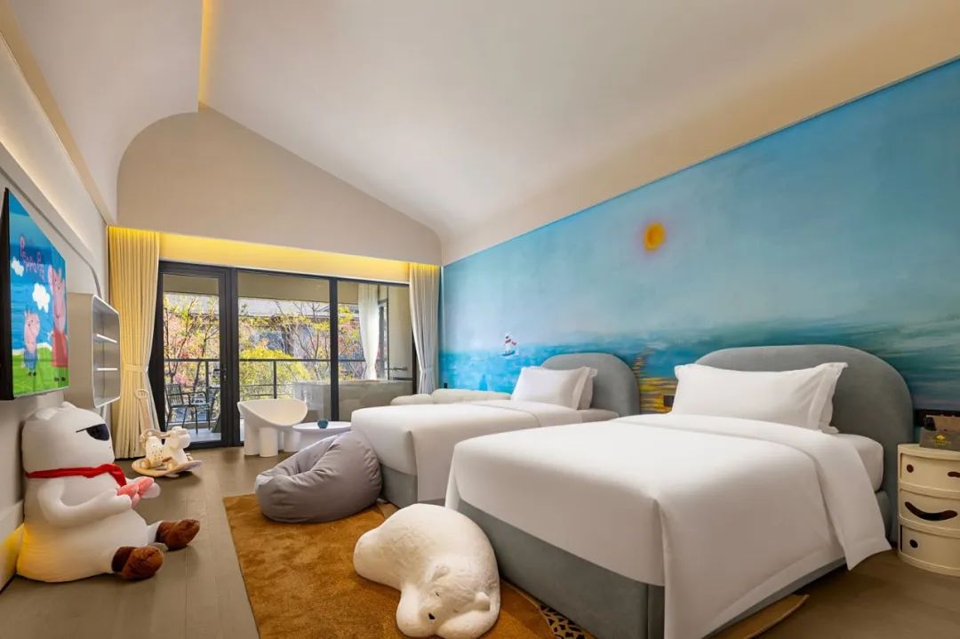 29間主題客房承包全家歡笑,從蘑菇王國到兔子先生,從綠野仙蹤到夢樂島,每一扇門后都藏著無盡的驚喜與想象??头烤拇蛟鞂偻け诋?,仿佛住進(jìn)絢爛多彩的童話世界。