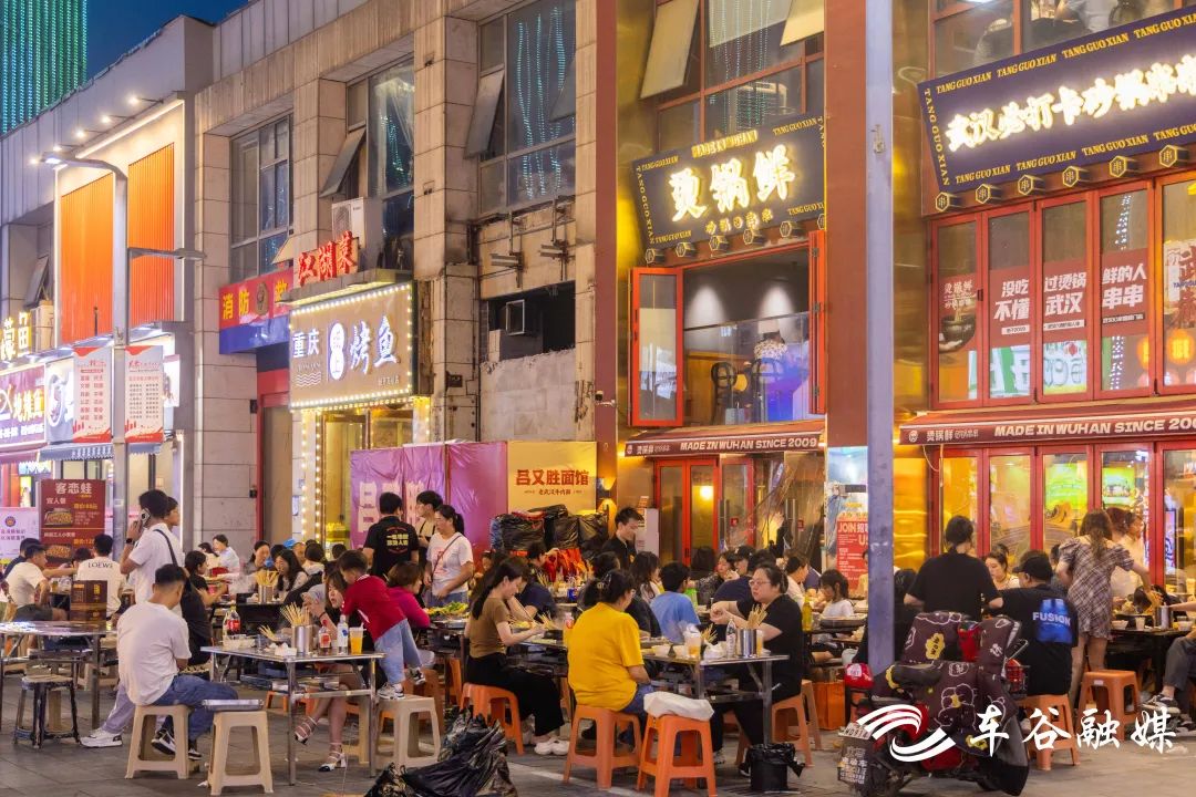 網紅集裝箱集市上,人們三五成群,手捧奶茶,聊天、散步,打工人迎來一天中最松弛的時刻。不遠處,兒童樂園傳來陣陣歡笑,快樂氣球屋、小雞快跑是孩子們的最愛。萬達金街上,烤串、麻辣燙飄香,耳邊傳來“走,去擼串!”“快來,吃油燜大蝦!”