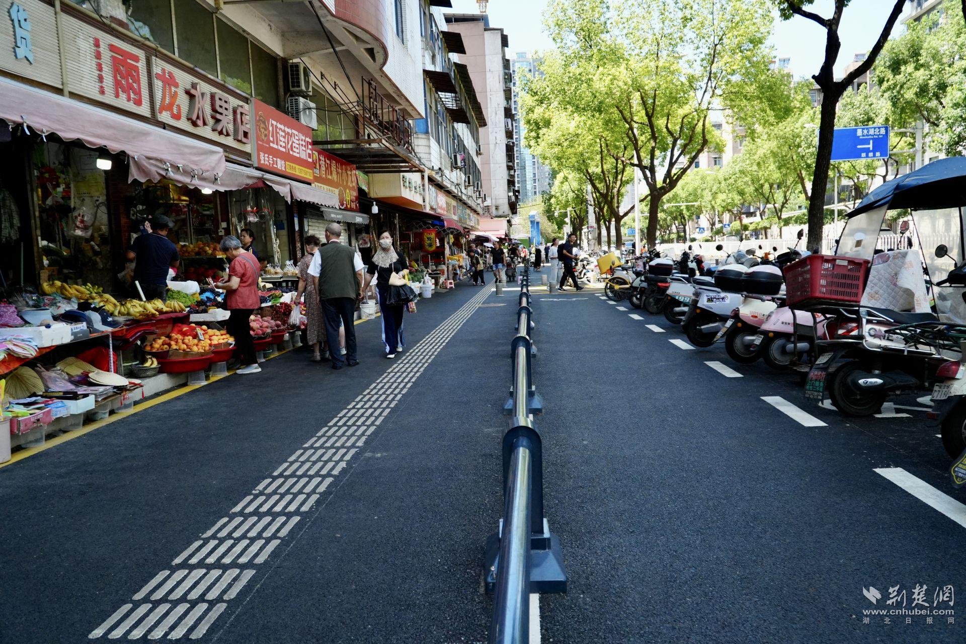 現(xiàn)在,瀝青路面平整干凈,人行道、非機(jī)動(dòng)車道清晰分隔;370米護(hù)欄有效實(shí)現(xiàn)人車分流;桂花樹(shù)與香樟樹(shù)點(diǎn)綴街頭,市場(chǎng)顏值大大提升。而市場(chǎng)外圍的“外擺線”,也讓攤販有序經(jīng)營(yíng)、秩序井然。