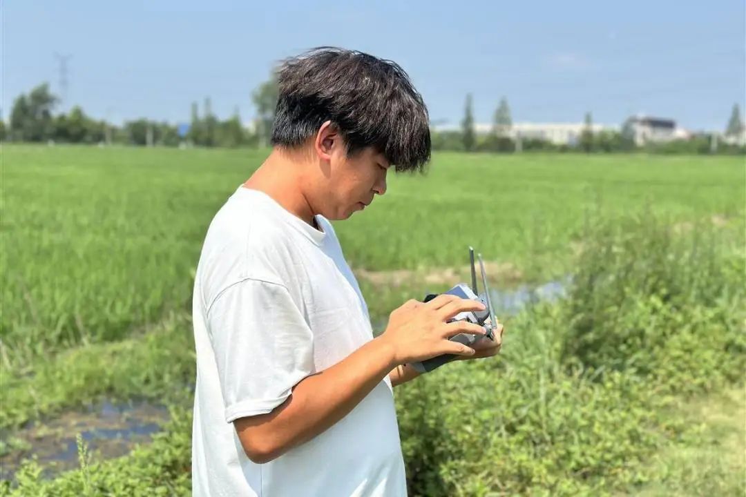 “混合肥料包含水稻專用肥、微量元素水溶肥以及磷酸二氫鉀,按科學(xué)比例調(diào)配。施肥過程中,無人機的參數(shù)設(shè)置通常為高度3米、噴幅6米、飛行速度每秒13.8米?!碧照芩闫稹靶寿~”,“無人機作業(yè)8小時,就能完成500畝的施肥,相比人工作業(yè),效率大幅提升?!?/p>
