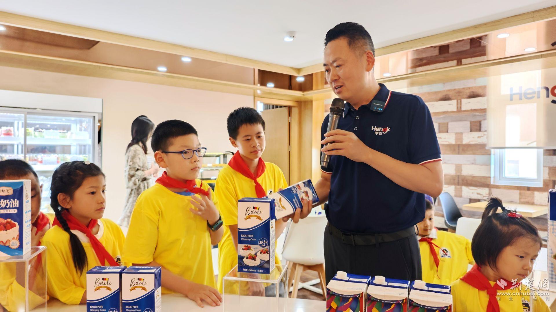 “亨克的稀奶油常見于蛋糕、甜品、冰激凌、奶茶以及西餐調(diào)湯等諸多美食中。其主要原料是從生牛乳中分離出來的乳脂肪,經(jīng)過先進(jìn)的生產(chǎn)工藝加工而成。稀奶油需在 2 - 6度的環(huán)境下儲(chǔ)存,以保證品質(zhì)?!蔽錆h亨克工作人員向孩子們講解道。