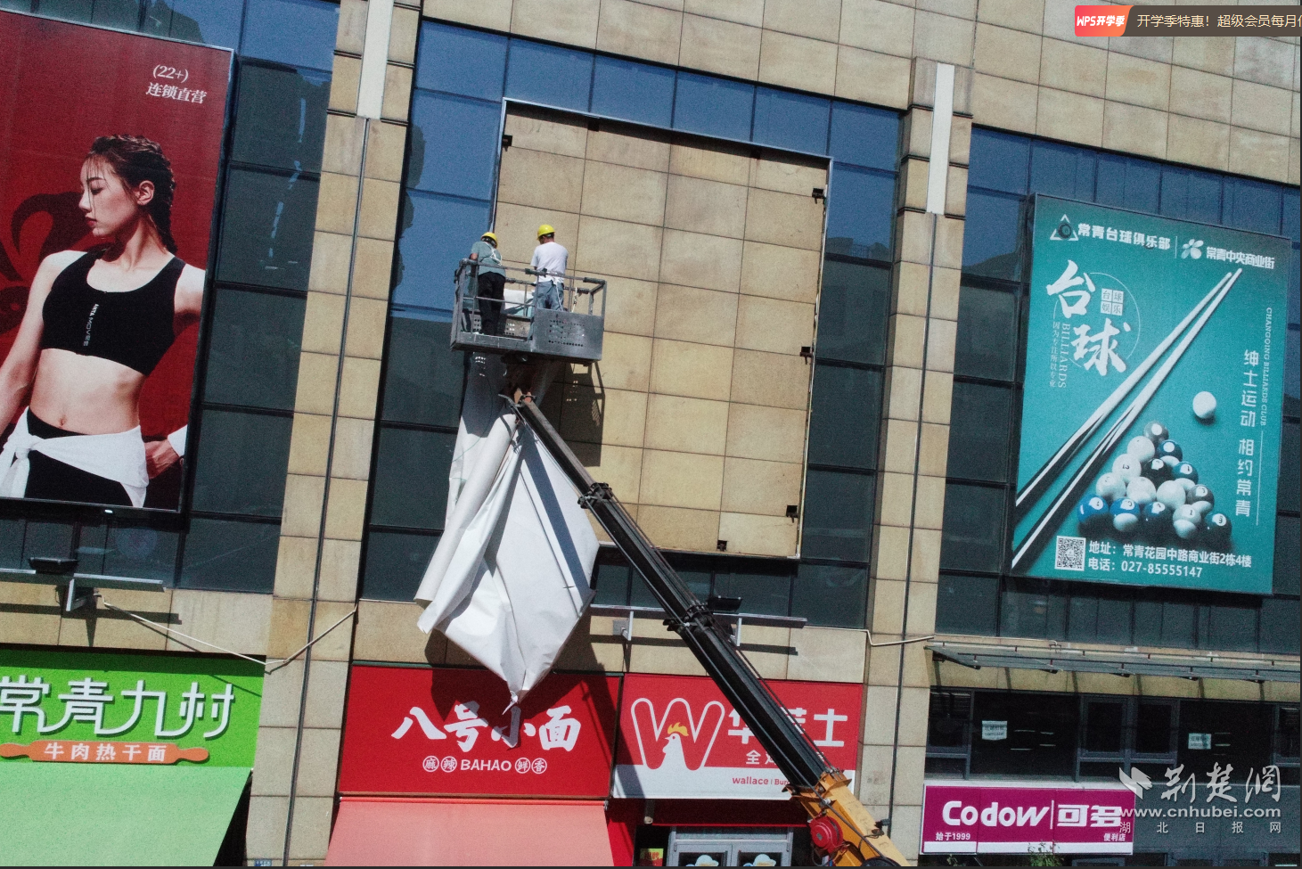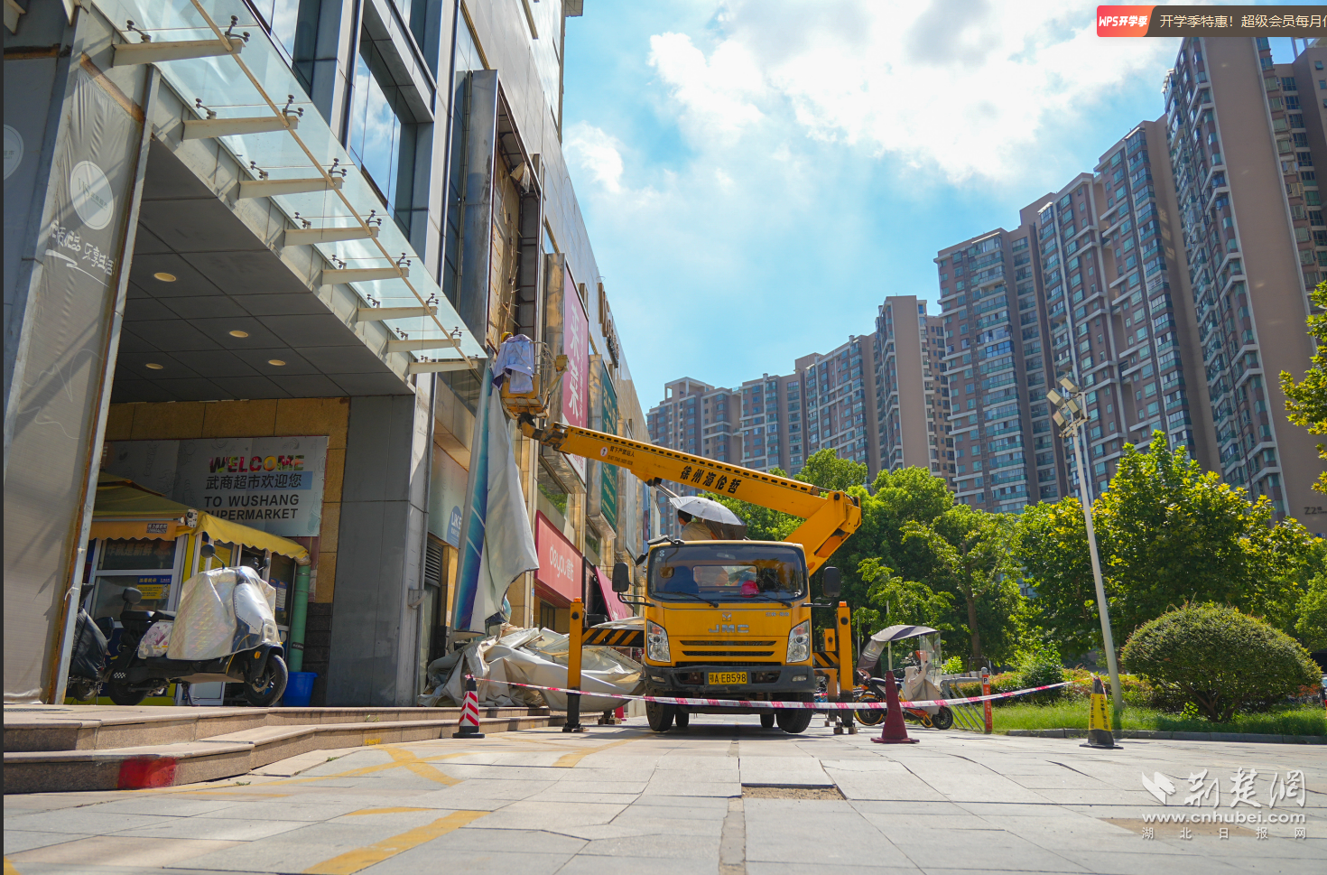 “存在安全隱患的廣告,堅決依法拆除,絕不姑息!”8月19日上午,在常青花園中央商業(yè)街武商量販門前,東西湖區(qū)城管執(zhí)法局市政科相關負責人介紹說。在現(xiàn)場,施工人員正搭乘高空作業(yè)車,對武商量販外立面的問題廣告進行一一拆除。據了解,常青花園中央商業(yè)街人流量大、廣告設置密集,部分廣告牌因長期風吹日曬出現(xiàn)畫面破損等問題,既影響市容環(huán)境,更對市民安全構成潛在威脅。