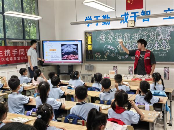 課程尾聲,全體同學起立,高舉右手,在老師和工作人員的帶領下莊嚴宣誓:“積極參加志愿服務,參加禁毒公益活動,為禁毒事業(yè)作出應有的貢獻!”稚嫩而堅定的誓言回蕩在教室里,成為新學期最有力的安全承諾。