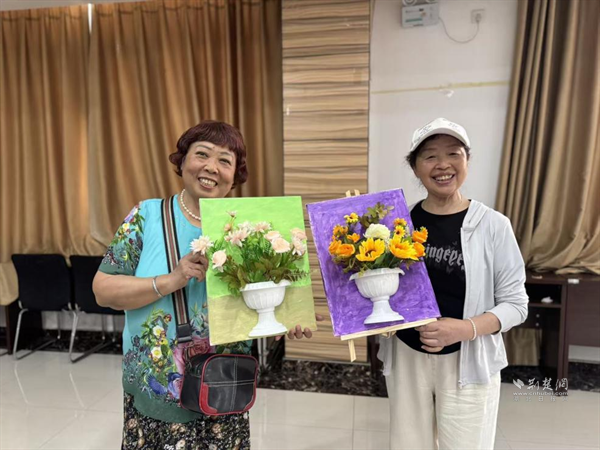 “這旋律一聽就熟!是《沒有共產(chǎn)黨就沒有新中國(guó)》!”紅歌競(jìng)猜環(huán)節(jié),老黨員們爭(zhēng)相搶答,經(jīng)典旋律喚起共同記憶,現(xiàn)場(chǎng)氣氛格外熱烈。隨后的油畫創(chuàng)作中,大家在老師的指導(dǎo)下手握畫筆、挑選顏料,在畫板上細(xì)細(xì)涂色,并將永生花點(diǎn)綴在畫作中。經(jīng)過數(shù)小時(shí)的設(shè)計(jì)制作,一幅幅獨(dú)具創(chuàng)意的立體畫在居民們手中誕生。