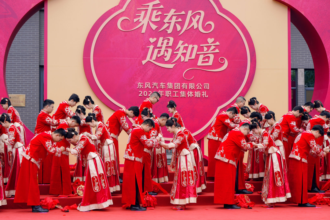 9月20日,東風(fēng)汽車2025年職工集體婚禮在武漢經(jīng)開區(qū)湯湖文化宮舉行。40對(duì)新人在親友和嘉賓的見證下,攜手穿越“幸福之門”,共同步入婚姻的殿堂,開啟人生新篇章。