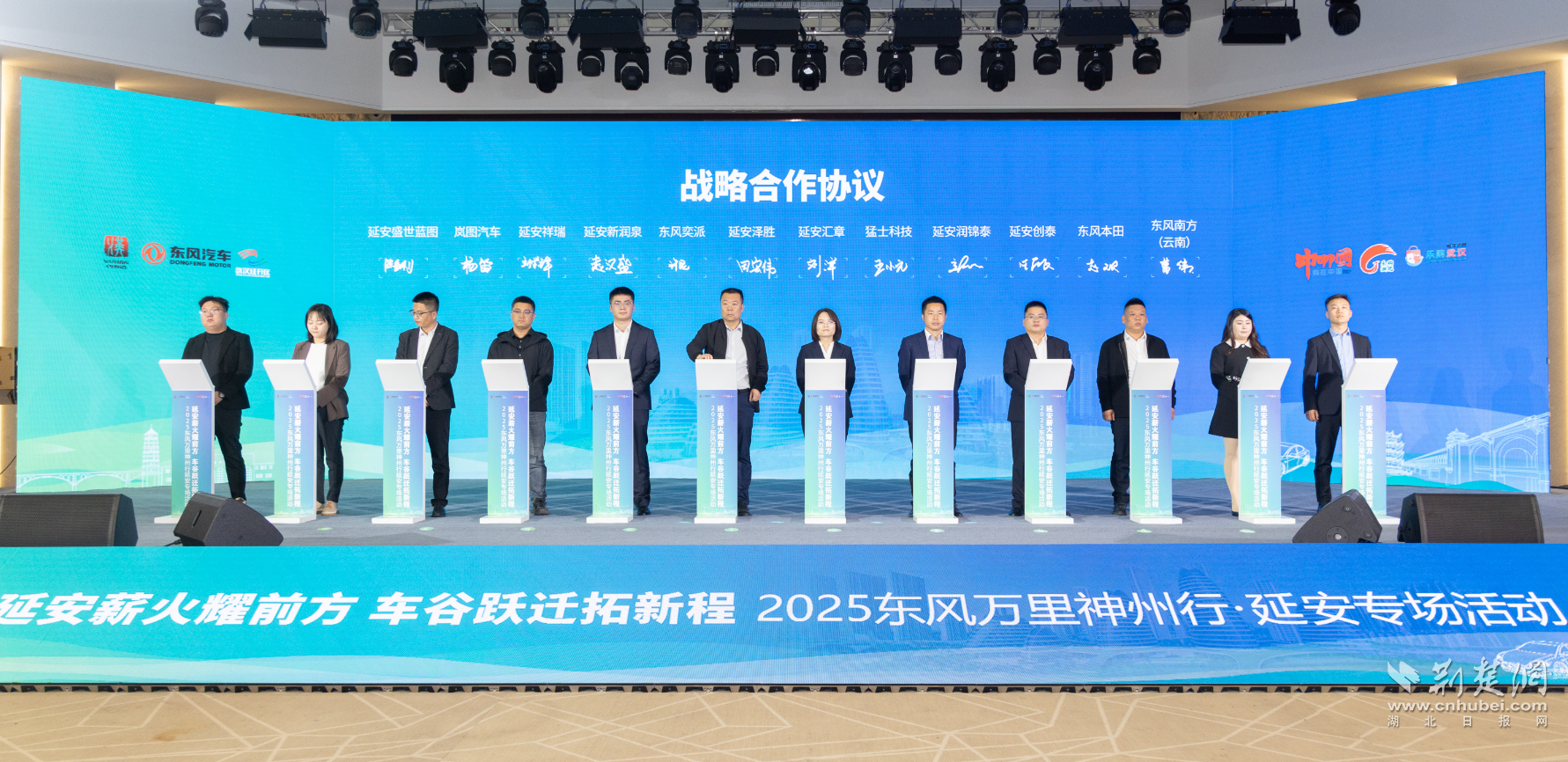 荊楚網(wǎng)(湖北日報網(wǎng))訊(記者陳泉 通訊員劉國發(fā)、蔣秋雨 供圖李巋)9月21日,“延安薪火耀前方 車谷躍遷拓新程”2025東風萬里神州行活動走進陜西延安,猛士科技、嵐圖汽車、奕派科技等分別作產(chǎn)品及品牌推介?;顒蝇F(xiàn)場,多款“武漢造”“車谷造”新能源汽車駛進延安,東風公司和哈啰共享汽車簽訂200臺東風新能源車輛采購協(xié)議。