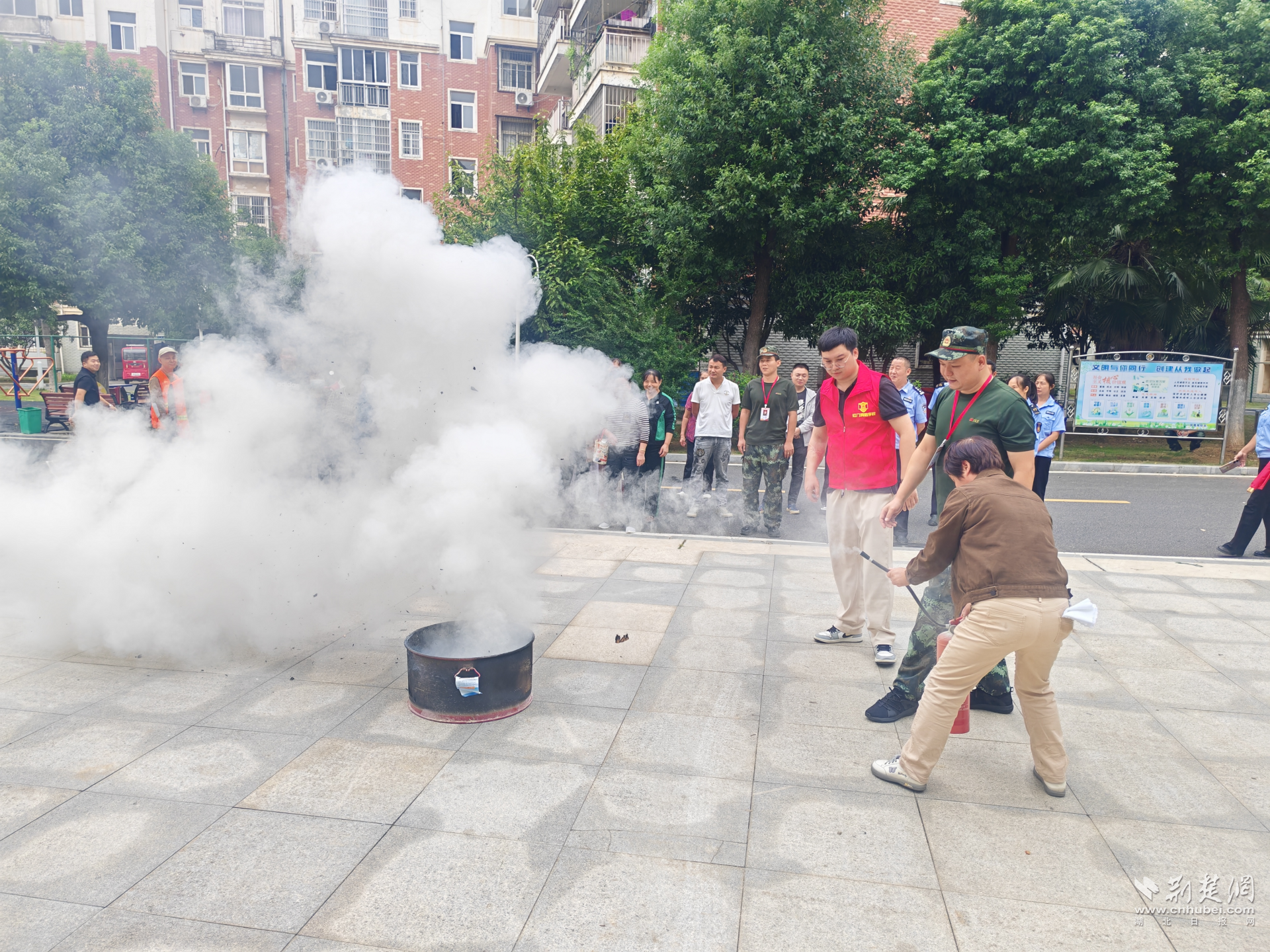 為了檢驗學習成果,現場還模擬了煙霧彈火災現場,所有參訓人員用濕毛巾捂住口鼻,低頭彎腰有序開展逃生,“手把手”指導人員正確逃生安全區(qū)域,保證全員“會逃、會防”。同時,社區(qū)同步開展安全救援演練,手把手教學滅火器、消防栓使用方法,讓參與者從“懂知識”升級為“會操作”,提升社區(qū)應急處置能力。