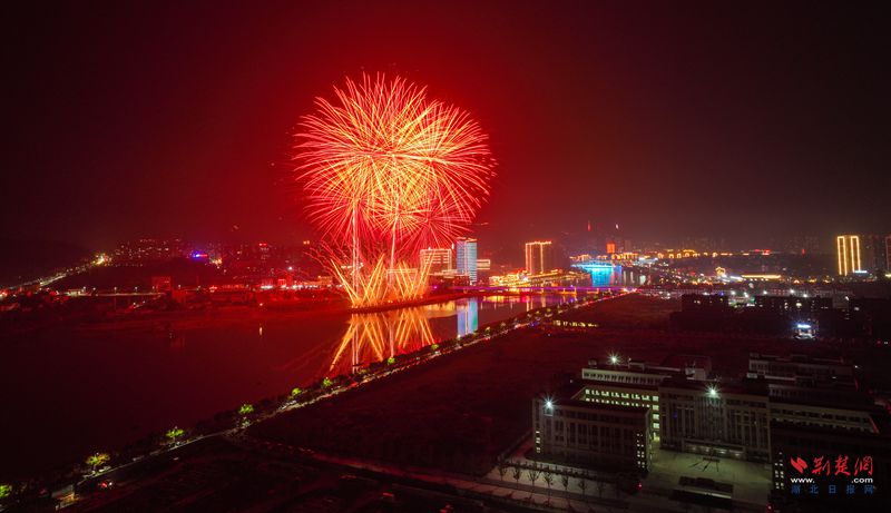 荊楚網(wǎng)(湖北日?qǐng)?bào)網(wǎng))訊(記者 胡小軍 通訊員 吳滕鈺)10月2日晚,英山縣城區(qū)一河兩岸霓虹閃爍,親水步道上鮮艷的國(guó)旗迎風(fēng)飄揚(yáng),處處洋溢著喜慶熱烈的節(jié)日氣氛。大別山文學(xué)廣場(chǎng)周?chē)蔀榭h城熱度最高的地區(qū),上萬(wàn)名市民、游客從四面八方匯集于此,大家翹首以盼,提前拿出手機(jī),選好角度,用鏡頭定格即將開(kāi)始的視覺(jué)盛宴。