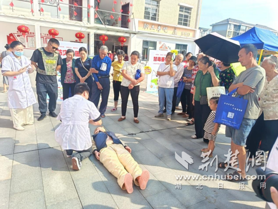 廣場另一側,醫(yī)護人員鋪開模擬人體模型,演示燒傷包扎與心肺復蘇。“包扎要先清潔傷口,再用紗布從傷口下方往上層層固定,松緊度以能伸入一指為宜;做心肺復蘇時,按壓深度必須達5-6厘米,頻率保持每分鐘100-120 次,節(jié)奏就像跟著‘1001、1002’數(shù)數(shù)一樣均勻?!贬t(yī)護人員一邊說,一邊用手比劃著關鍵動作。講解完畢,邀請居民實操,遇到按壓角度偏斜、力度不足的情況,便俯身手把手糾正,耐心調整姿勢,確保每個人都能真正掌握正確要領。