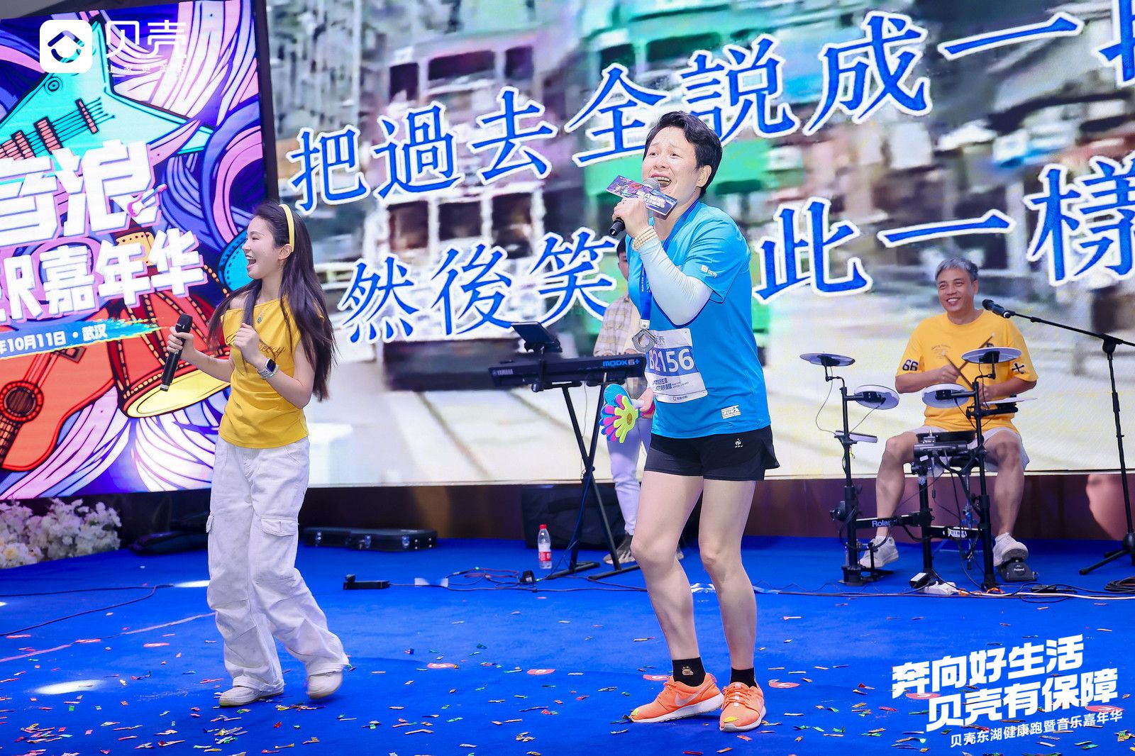 熱干面樂隊率先登場,熟悉的“漢話”旋律一響,立刻點燃全場熱情,跑者們跟著節(jié)奏齊聲大合唱,歌聲此起彼伏。樂隊還特意邀請剛跑完步的選手上臺,大家不分彼此,一起對唱經(jīng)典曲目,時而互動打趣,時而跟著節(jié)拍跳舞,汗水未干的臉上滿是笑容,將運動后的快樂與音樂的狂歡完美融合。