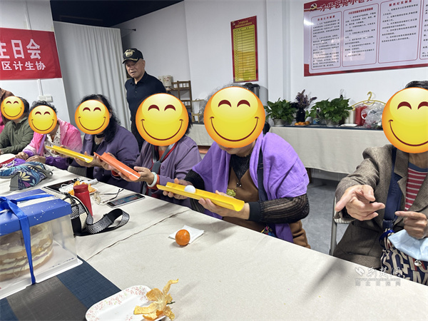 互動(dòng)游戲后,生日蛋糕緩緩?fù)苼?,全?chǎng)人員齊聲高唱《生日快樂歌》。長者們圍坐在一起,閉眼許愿,共同吹滅蠟燭,隨后開心地分享著甜蜜的蛋糕,每一口都飽含著社區(qū)的關(guān)懷與鄰里間的情誼。