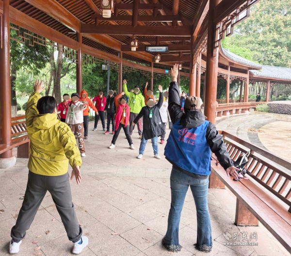 抵達公園后,全體人員在指導(dǎo)下進行熱身操活動。簡單的互動游戲不僅驅(qū)散了清晨的涼意,也進一步調(diào)動了參與者的積極性,為后續(xù)游覽營造了輕松愉快的氛圍。