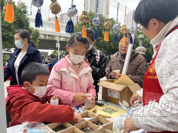 體驗(yàn)區(qū)里,社工帶領(lǐng)孩子們動(dòng)手制作茱萸香囊,講述“佩茱萸祈福避災(zāi)”的古老風(fēng)俗。孩子們捧著親手做好的香囊,迫不及待地想送給家里的長(zhǎng)輩。公益集市的人氣更是高漲,非遺絨花攤位展示傳統(tǒng)之美,慈善義賣匯聚鄰里愛心,植物醫(yī)生攤位傳遞健康養(yǎng)生理念。