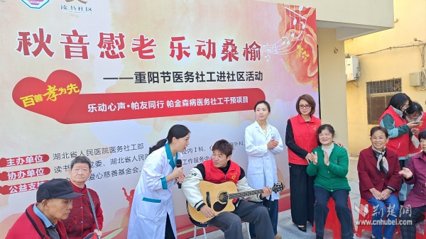 黃鶴書房外,由社區(qū)聯(lián)合武漢大學(xué)人民醫(yī)院共同舉辦的“秋音慰老,樂動桑榆”主題活動別具特色,融合健康義診、傳統(tǒng)美食、趣味游藝于一體。