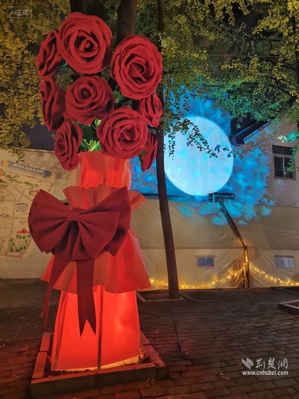 荊楚網(wǎng)(湖北日?qǐng)?bào)網(wǎng))訊(通訊員 陳曉燕 周佳穎)11月5日,武昌區(qū)黃鶴樓街道后宰門街角一道獨(dú)特的風(fēng)景引人注目,一棵“永不凋零”的“愛之樹”絢麗綻放,樹上盛開的巨型玫瑰花與一旁的月球投影裝置相映成趣,與遠(yuǎn)方的黃鶴樓共同構(gòu)成一幅詩意城市景觀。