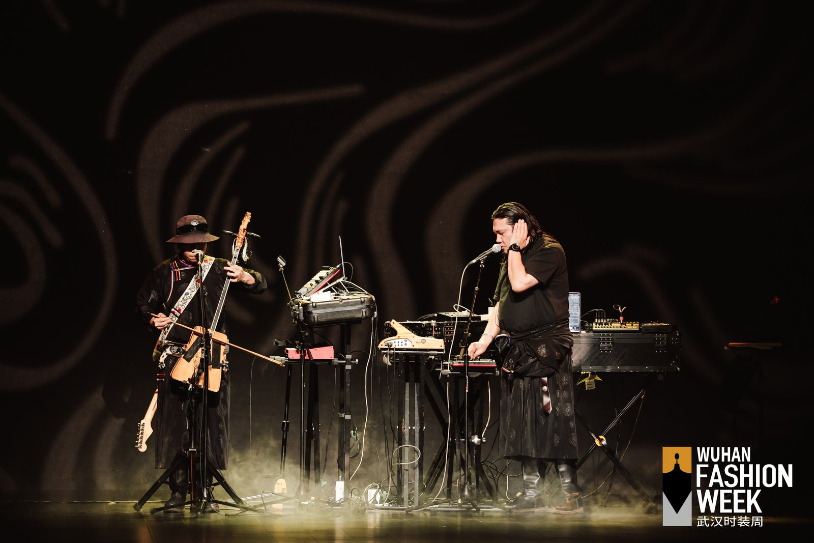 陳宇攜手Taiga樂隊,把錫林郭勒草原的晨霧、馬頭琴與電子節(jié)拍轉化成可行走的時裝音景。可持續(xù)植物素皮、流蘇與繩結形成呼應,讓游牧精神在當代廓形中保持自由。