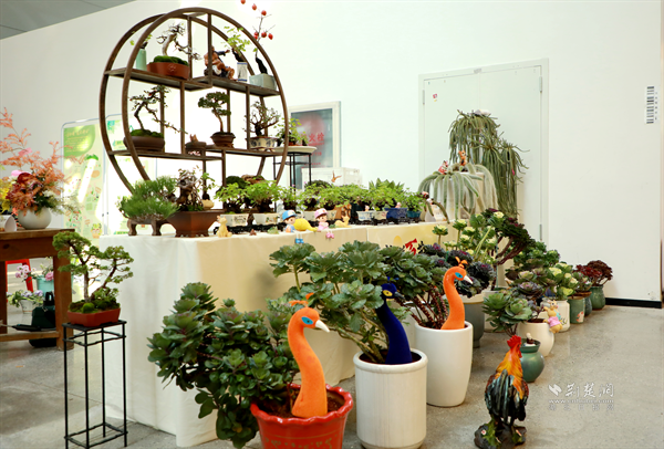集中展示活動(dòng)人氣滿滿,各區(qū)園藝師代表在沙湖公園花木溫室現(xiàn)場(chǎng)“擺攤”,“菊藝匠心”“社群百藝”兩個(gè)主題展臺(tái)前圍滿了興致勃勃的市民。菊藝盆景造型別致、創(chuàng)意插花意境深遠(yuǎn)、多樣化的園藝作品各具特色,這些由園藝師精心培育、創(chuàng)作的展品,不僅展現(xiàn)了精湛技藝,更傳遞出綠色生活理念,廣受歡迎和好評(píng)。