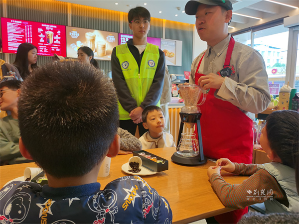 活動現(xiàn)場,星巴克專業(yè)咖啡師從咖啡豆的產地故事、烘焙原理,到手沖咖啡的水溫控制、拉花技巧,都逐一細致講解。在手沖實踐環(huán)節(jié),孩子們在咖啡師指導下學習中心畫圈注水的方法,專注完成兩分半的沖煮流程??Х葞熯€從風味平衡、操作規(guī)范、創(chuàng)意呈現(xiàn)三個方面進行點評,讓孩子們在實踐中感受職業(yè)的嚴謹。