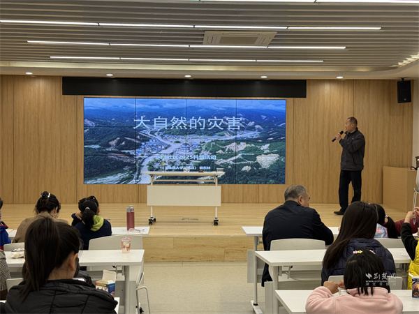 活動特邀中國地質(zhì)大學(xué)(武漢)國家地理信息系統(tǒng)工程技術(shù)研究中心副研究員容東林授課,以專業(yè)講解、實驗演示、互動答疑相結(jié)合的方式,打造了一場通俗易懂、寓教于樂的知識探索之旅。容東林憑借專業(yè)知識與實踐經(jīng)驗,結(jié)合案例視頻和圖片,生動介紹泥石流、滑坡、火山、地震等常見地質(zhì)災(zāi)害的類型、形成原理及危害,重點拆解地震避險、泥石流躲避、臺風(fēng)出行禁忌等實用防災(zāi)知識,用真實案例讓居民深刻認(rèn)識到掌握防災(zāi)技能的重要性。
