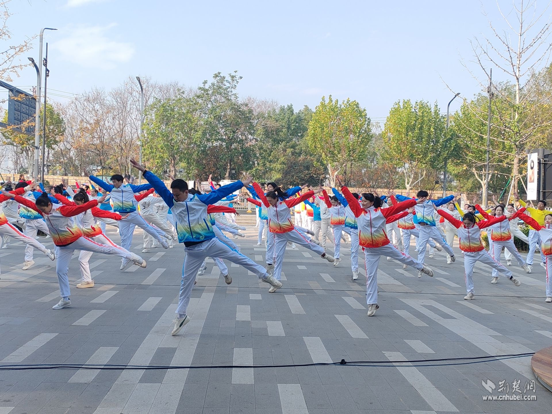 伴隨著氣勢(shì)恢宏的《領(lǐng)航》旋律響起,由武昌黃鶴之星文化驛站成員、轄區(qū)文藝團(tuán)隊(duì)及武漢音樂(lè)學(xué)院學(xué)生組成的140人表演隊(duì)伍翩然起舞。舞者們身著亮麗服裝,步伐整齊有力,動(dòng)作舒展昂揚(yáng),如一面面流動(dòng)的旗幟,在冬日的陽(yáng)光下?lián)]灑著自信與熱情。在武漢歌舞劇院許峰老師的現(xiàn)場(chǎng)帶領(lǐng)下,整場(chǎng)表演張弛有度、情感充沛,生動(dòng)詮釋了新時(shí)代的朝氣與力量,贏得了在場(chǎng)觀眾陣陣掌聲與喝彩。
